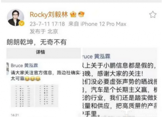 小鹏汽车产品营销总经理黄泓霖在个人朋友圈表示“请大家关注官方信息,路边社确实不太可靠”。黄泓霖为何?是在说谁呢?