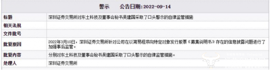 实际上,这已经不是东土科技第一次因信批问题受到深圳证券交易所的关注了。据公司2022年9月14日公告,在2022年3月10日,深圳证券交易所针对公司在以简易程序向特定对象发行股票《募集说明书》存在的信息披露问题进行了加强事后监管,分别对东土科技及董事会秘书吴建国采取了口头警示的自律监管措施。