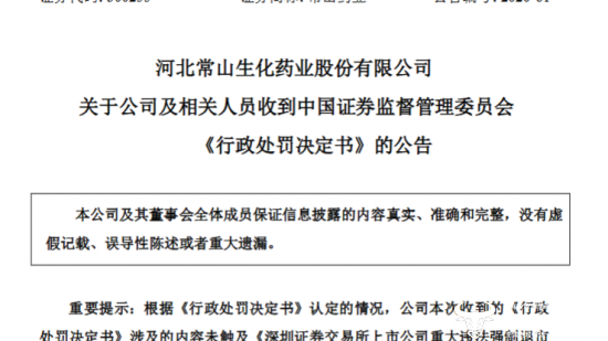 上述事件发生时,常山药业的董事长还是高树华,他对此事负有责任,因此中国证监会对常山药业罚款了60万元,对高树华罚款了30万元。如今,常山药业的董事长已是高树华的儿子高晓东,也不知他对上述事项有何看法呢?