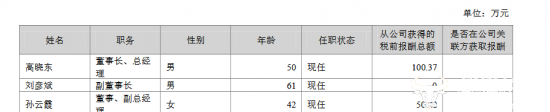 2022年年报显示,高晓东从公司获得的税前报酬总额为100.37万元,比公司其他高管人员都高。