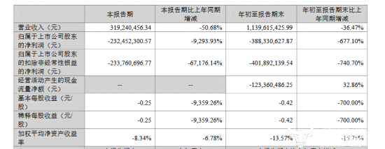 今年三季度,常山药业营业收入约11.40亿元,与上年同期相比下滑了36.47%;公司净利润也大幅下降677.10%,处于亏损状态,亏损3.88亿多。现金流量净额﹣1.23亿元,基本每股收益﹣0.42元/股。