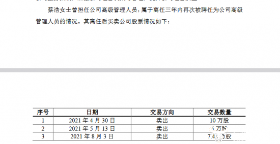 但到2020年6月时,蔡浩却因“个人原因”突然辞职了,辞去公司副总经理的职务,直至前不久她才重新被聘任为公司总经理。