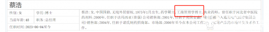 常山药业年报显示,蔡浩出生于1975年1月,今年48岁,药学硕士,工商管理学博士,但均未披露其具体毕业院校。