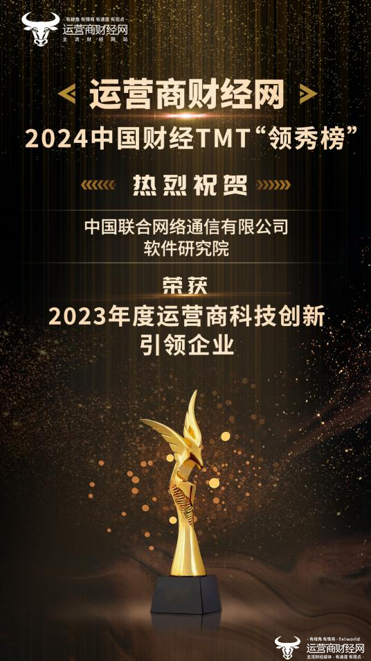 其中,中国联合网络通信有限公司软件研究院荣获“2023年度运营商科技创新引领企业”奖项。