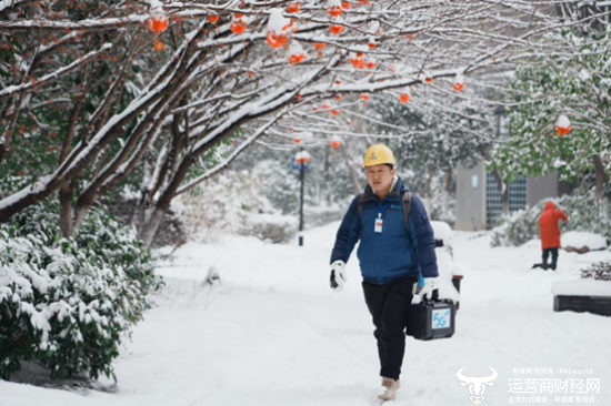 (大雪中,湖北移动工作人员上门为用户提供宽带服务)