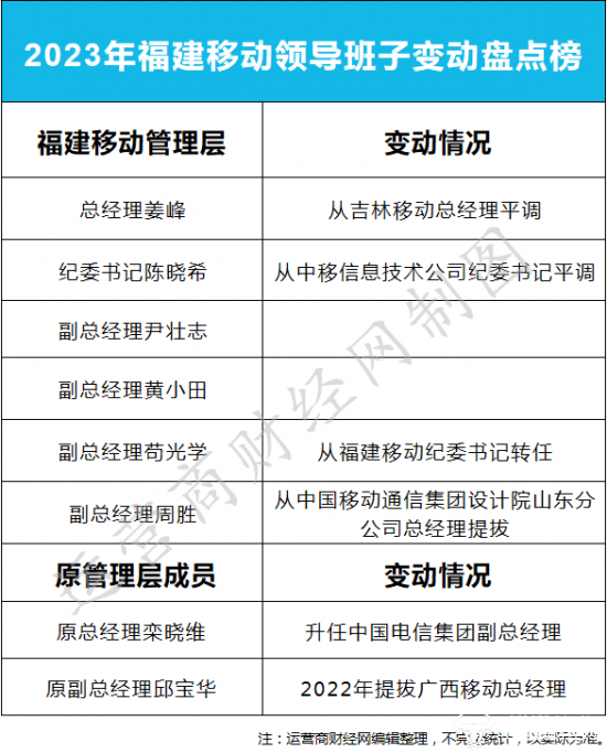一直以来,福建移动都是集团在南方重要的大省公司,而在2023年中,福建移动管理层成员也发生了不小的变动,运营商财经网将进行独家盘点揭秘。