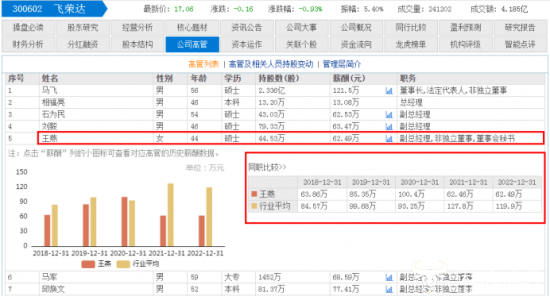 值得注意的是,王燕是几位副总经理中唯一一位女性,且年龄最小。东方财富网显示,王燕的薪酬是62.49万,比副总邱焕文少,飞荣达高管薪酬中,有3人的薪酬差不多,包括王燕。