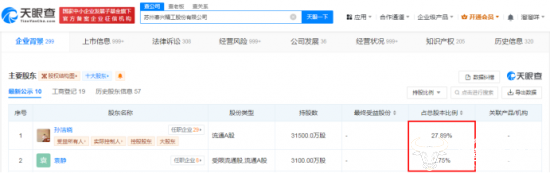 天眼查显示,春兴精工目前最大股东仍是孙洁晓,持股数31500.0万股,占总股本比例达到了27.89%,袁静持股数3100.00万股,占总股本比例只有2.75%。