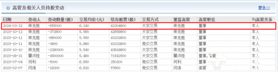 随后,2024年3月,束龙胜再次减持股份655000股,此次交易均价为6.24元,计算可知这两次束龙胜共套现2265.1万。