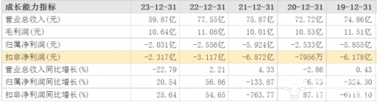 根据历年年报数据,得润电子2019-2023年营收分别为74.86亿元、72.72亿元、75.87亿元、77.55亿元、59.87亿元。值得注意的是,其2023年营收同比下降了22.79%,且公司2019-2023年的归母净利润与扣非后净利润均为负值。虽2023年净利润较2022年亏损有所收窄,但整体亏损仍较为严重。
