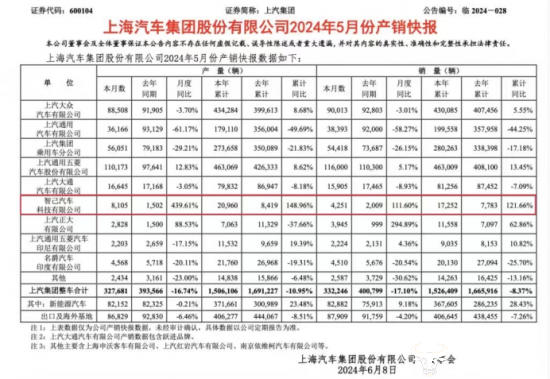 据了解,5月份智己汽车的销量为4251辆,同比增长111.6%,今年1-5月累计销量17252辆。