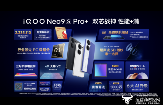 2024年7月11日,“双芯战神,性能+满”iQOO Neo9S Pro+于北京环球度假区正式发布,到手价2899元起。iQOO 在今年夏天为广大学生朋友带来性能、解锁、续航、外观和OS“全面+满”的暑期特别礼物—iQOO Neo9S Pro+,它拥有同级唯一[ 同档唯一系与24年上半年上市新机对比,数据来源京东平台手机参数]骁龙8 Gen3旗舰双芯和超声波3D指纹技术豪华配置组合,堪称同档性能旗舰不二之选。
