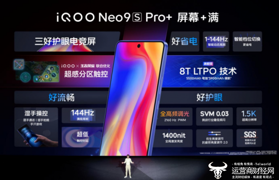 作为三千元档新标杆,iQOO Neo9S Pro+搭载“好流畅、好省电、好护眼”的三好护眼电竞屏,其不仅拥有行业领先的省电技术方案和2160Hz PWM全高频调光,还通过和《王者荣耀》联合调优,带来全新超感分区触控,以零断触的惊人表现挑战安卓最低触控时延。