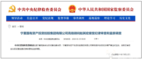 然而,值得关注的是,2024年7月3日,据宁夏回族自治区纪委监委消息,宁夏国有资产投资控股集团有限公司高级顾问赵其宏涉嫌严重违纪违法,目前正接受自治区纪委监委纪律审查和监 察调查。据赵其宏个人履历可知,他曾于2013年至2018年期间担任过宁夏银行行长一职。