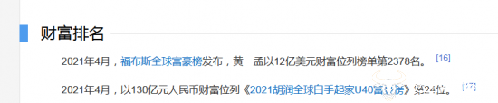 2015年11月,心动网络曾在新三板挂牌上市,后于2019年又登陆港交所。随着公司的发展壮大,黄一孟也摇身一变成为“大富豪”。百度百科显示,2021年4月,黄一孟以12亿美元财富登福布斯全球富豪榜;还以130亿元财富位列《2021胡润全球白手起家U40富豪榜》。