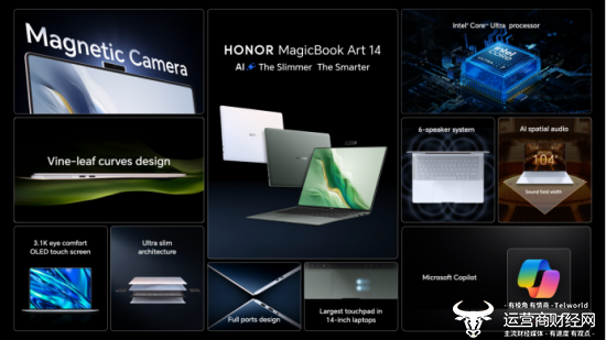作为超轻薄领域的首款AI PC产品,荣耀MagicBook Art 14在AI能力和体验上进一步升级。全系搭载英特尔酷睿Ultra处理器,在平台级AI使能的OS Turbo 3.0技术加持下,带来行业领先的续航和性能体验。针对用户常用的在线会议、日常办公等场景,荣耀MagicBook Art 14打造了一站式的智慧办公解决方案,通过YOYO会议、YOYO助理、超级工作台等AI实用功能,为职场用户提供更便捷、智能的办公体验。