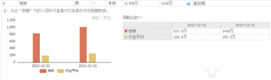 值得一提的是,根据东方财富网显示,柏林2023年的薪酬为1009万元,和上一年相比涨薪181.1万元,薪酬待遇相当不错。