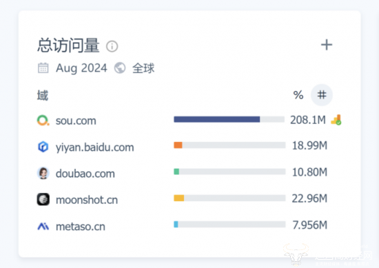 近日,独立AI产品榜单“AI产品榜(aicpb.com)”8月榜单更新发布,三六零(下称“360”)公司旗下360AI搜索用户访问量位列国内总榜第二名、全球搜索引擎榜第三名。结合 Similarweb 公开数据,2024年8月份,360AI搜索用户访问量已超 2 亿,是 Perplexity AI 三倍以上,蝉联全球最大的AI原生搜索引擎;月独立访客量(UV)超8000万,远超国内一众AI产品;并以113%的月增速,成为全球增速最快的规模以上AI搜索引擎。