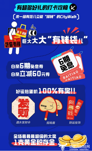 在互动打卡方面,京东金融展区更是不容错过,不仅有丰富多样的互动玩法,以及众多潮流好礼,供用户前来打卡。用户凡拍摄逛展内容发布,即可获得巨大“有钱袋儿”,能装下逛展得来的超多礼品,让你在工业风浓浓的首钢园CityWalk超有范儿!参与京东白条活动,还可领白条6期免息券+白条立减60元券;还有“天天摇黄金”活动,随机可得最高30mg黄金克重。只要是参与互动,用户都可再开启好运扭蛋机,且100%有奖,“遇水发财”伞、摇钱扇、“升值加薪一条龙”挂饰、京东玩偶等潮流好礼。还有全场最最最超级的大奖——足足1克的黄金积存金,等你来拿!