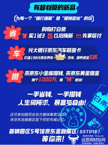 作为行业领先的金融科技平台,京东金融此次将全新亮相(首钢园区5号馆S5T015),在专题展览中沉浸式向用户展示在消费金融、支付、财富管理等在内的一站式数字金融产品与服务;此外,京东金融还将在服贸会金融专题活动中,升级产品服务体验为“简单、快捷、安全”,持续为消费者提供专业、可信赖的服务。