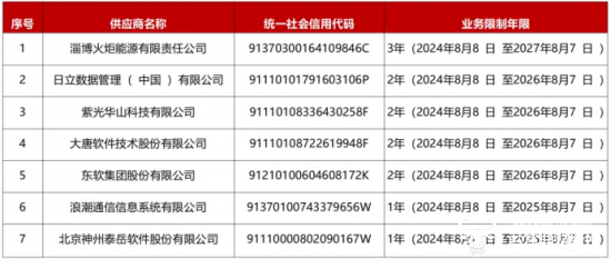 其中HPE业务禁入三年、紫光华山业务限制两年、浪潮通信业务限制1年。