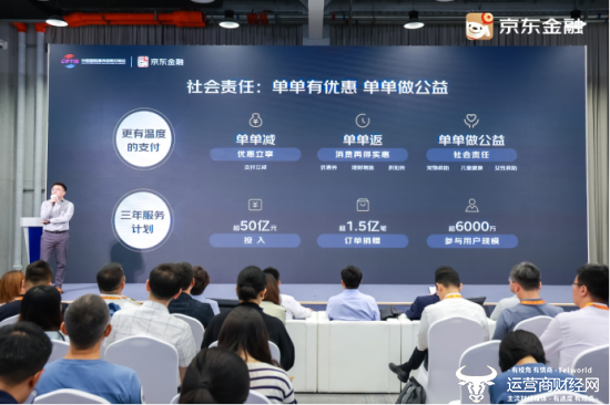 在未来三年,京东支付将投入超50亿元服务用户反哺社会、将带动超6000万人、捐赠超1.5亿笔订单进行公益服务。
