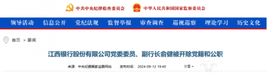 今年4月,据“廉洁江西”消息,江西银行在任副行长俞健被查,系主动向组织交代问题。日前,俞健的调查结果被公布。