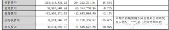 由此,利润增加不多的原因的就此出现了,产品更新换代及扩大销售渠道势必要增加研发费用和销售费用。上半年公司销售费用为3.13亿元,较上一年同比增加18.54%;研发费用为8663.48万元,同比增加20.97%。其中下降较多的所得税费用,公司表示也是由于研发费用增加、研发加计扣除增加导致。