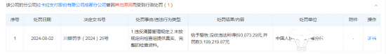 据行政处罚决定书“银京罚决字〔2024〕30号”显示,拉卡拉因未落实真实、完整、可追溯和全流程一致性的要求,未严格落实商户实名制要求,未将商户资金结算至其同名银行结算账户。因此,人民银行北京分行于9月4日对其作出警告,并罚款406万元的处罚。