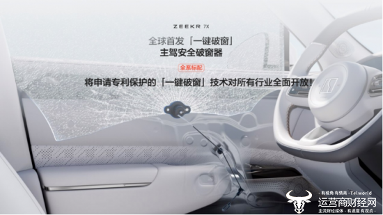 极氪7X首创带有「一键破窗」功能的主驾安全破窗器,应对极端危险场景