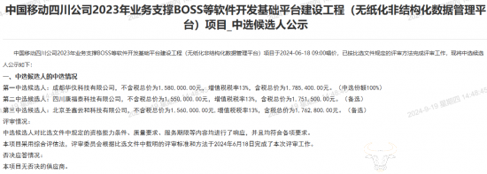 此次,神州数码的违规行为涉及到四川移动2023年业务支撑BOSS等软件开发基础平台建设工程(无纸化非结构化数据管理平台)项目,该项目规模并不大,新建一套无纸化非结构化数据管理平台,预算160万元。