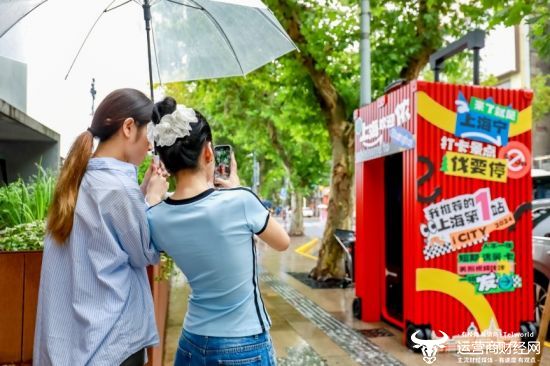 长乐路马路酒吧“鼻祖”624CHANGLE酒吧新址百米远处,街边的数字公话亭“兼职”开起快闪酒吧,不时有年轻人驻足要一杯“老友”系列特调鸡尾酒;游人如织的淮海路上,一向走“实力派”路线的数字公话亭变身超大号现代艺术装置,火红的旅行箱造型“显眼包”,引来不少游客推着行李箱与之合影。
