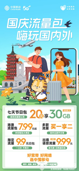 马上国庆长假来了,打算周边游的宝子们准备好了吗?无论是你去探寻人文古城,还是漫步南方小镇,亦或者是游玩热辣都市,驰骋辽阔草原......充足的流量让我们出行上网更肆意!