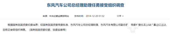这一事件要追溯到十年前。2014年12月份,网站发布消息:“东风汽车公司总经理助理、东风汽车有限公司副总裁、党委常委任勇涉嫌严重违纪违法,目前正接受组织调查。”随后,东风汽车公司官网发布消息称,经公司研究决定,免去东风汽车公司总经理助理、东风汽车有限公司副总裁、党委常委、东风日产乘用车公司副总经理任勇的一切职务。