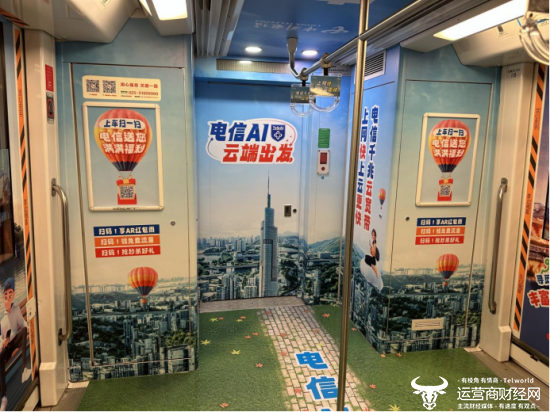 据介绍,此次江苏电信打造的“AI畅游·大美江苏”地铁文旅专列可谓“科技感爆棚”,走进地铁车厢,就仿佛走进了一页栩栩如生铺在眼前的AI旅游攻略,不仅包罗了南京热门景点,还能认识到5G网络、FTTR千兆云宽带、生活权益以及AI产品等诸多电信业务,让每一位乘客在流动的风景线中,沉浸式体验一场数字生活的奇妙漫游。