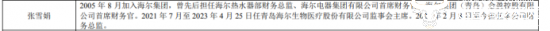 2021年7月,张雪娟被委任为青岛海尔生物医疗股份有限公司的监事会主席,任职到2023年4月25日。