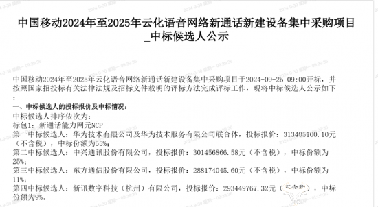 近日,“中国移动2024年至2025年云化语音网络新通话新建设备集中采购项目”结果出炉!据悉,这是中国移动首次集采这一设备,这个总标的达10亿元的项目究竟花落谁家呢?