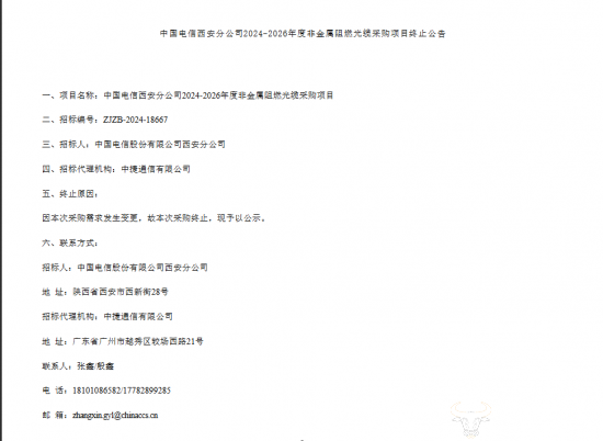 近日,中国电信发布公告,西安分公司2024-2026年度非金属阻燃光缆采购项目终止引起人们的注意,这是怎么回事呢?