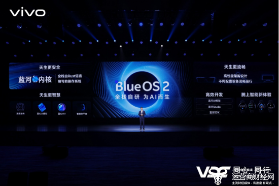 蓝河操作系统2深度融合了蓝心智能强大的AI 能力,其中蓝心大模型为技术底座,蓝心小V为专属助理,智能体平台提供专业服务。在生态方面,蓝河兼容了开放原子开源基金会孵化的hapjs快应用标准,随着快应用升级到2.0,也将为用户带来更加智慧的服务生态。同时,vivo为开发者带来了全新的蓝河UI框架。基于自适应UI布局,只需要一次开发,就能在不同尺寸的屏幕上带来一致的体验。