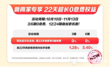 特别值得一提的是,针对历史未开通过分期免息的新商家,京东白条还推出了22天的专享超长0息费权益,让新商家没有后顾之忧,零负担体验到分期免息带来的销量增长。