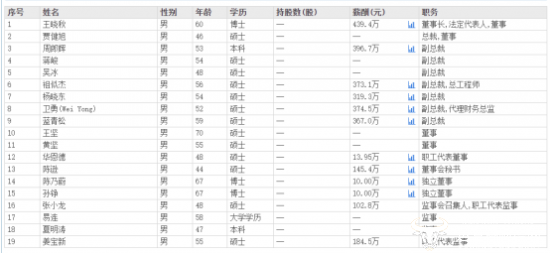 副总裁兼总工程师祖似杰,薪酬由354.5万元增至373.1万元