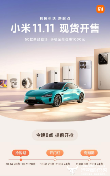 10月14日晚8点,小米正式拉开2024年双11购物狂欢大幕。本次大促的主题为“科技生活,新起点”,小米携手众多明星单品登场,特别推出50款科技新品,手机最高可优惠1000元,「人车家全生态」爆品即刻全面开抢。现在打开小米商城App,就可看到2024小米双11专属区域,点击进入就能够查看更详细的抢购攻略,既有多重好礼领取,还有人气手机、限时限量、重磅好物、科技新品等各类专区或活动会场。