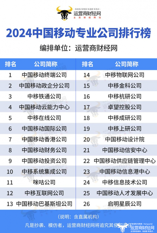 其中,2024中国移动专业公司排行榜也是此次系列榜单中的一个,主要针对中国移动旗下多家专业公司进行详细排名。而这一榜单也凸显了几大特点: