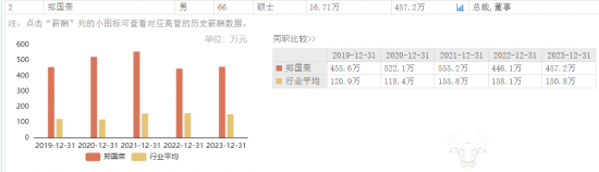 与此同时,公司高管的薪酬也有一些变化。不过,只有总裁郑国荣薪酬降低,在公司业绩下滑的两年,郑国荣从2021年的555.2万到2022年的446.1万再到2023年的457.2万元。