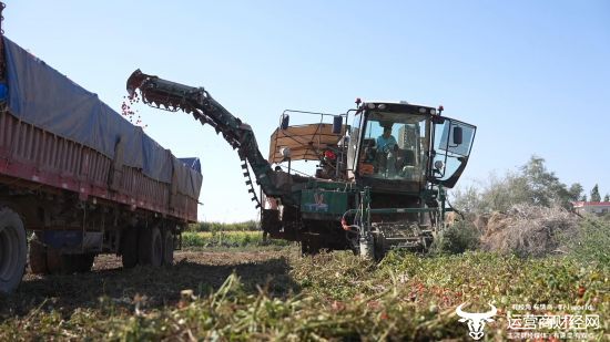 ▲价值310万元的番茄收获机正在运作。房昭旭 | 摄