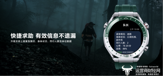 HUAWEI WATCH Ultimate首发上市时即支持双向北斗卫星消息特性,本次再升级新增支持北斗卫星消息自定义和快捷求助+体征上报等特性,为户外探险增一份安心。在无地面网络信号覆盖的环境下,手表可独立发送北斗卫星消息,将文字和位置信息向外发出,配合手机畅连App支持多条位置生成轨迹地图。在野外迷路或需要紧急求助时,可使用此功能发送求救信息。