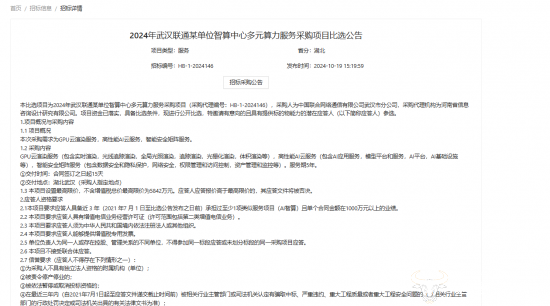 近日, “2024年武汉联通某单位智算中心多元算力服务采购项目比选公告”,具体是什么情况呢?
