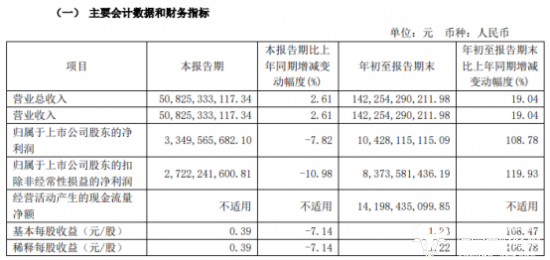 但从整体上来看,长城汽车的业绩依旧是上涨的,且势头很猛。今年前三季度,长城汽车的营业收入为1422.54亿元,同比增长19.04%;归属于上市公司股东的净利润为104.28亿元,同比大增108.78%;经营活动产生的现金流量净额为141.98亿元。