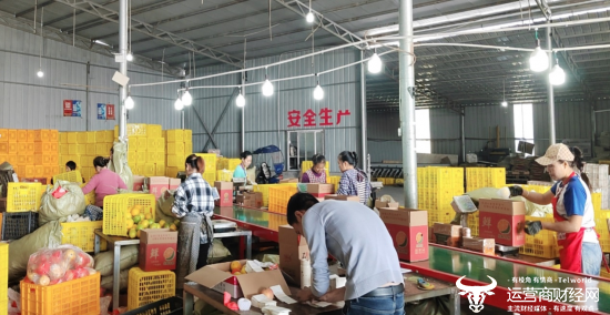 ▲罗鹏的现代农业仓储保鲜库里,员工们正在打包水果。廖正|摄