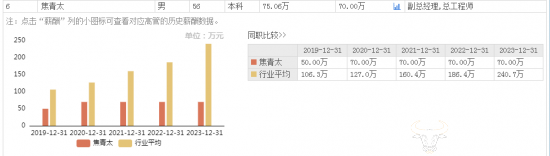 此外,根据东方财富网数据,焦青太自2020年涨薪20万元至70万,近几年薪酬都未变,薪酬待遇很稳定。